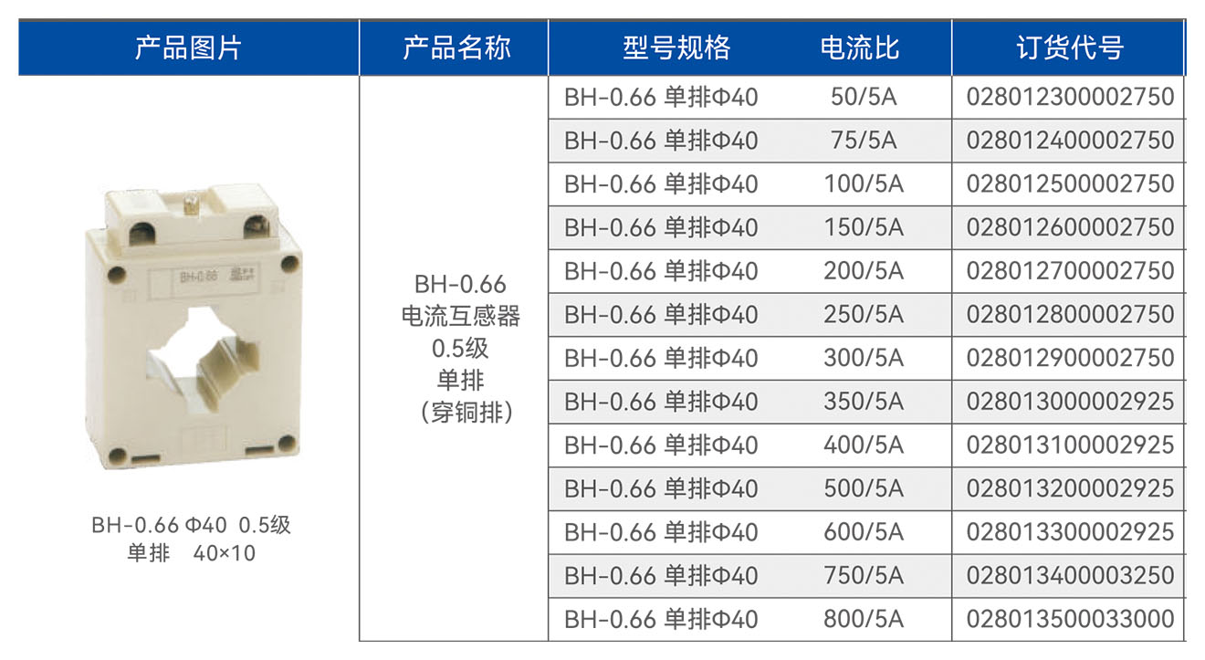 BH-0.66 Φ40 0.5级 单排 40*10