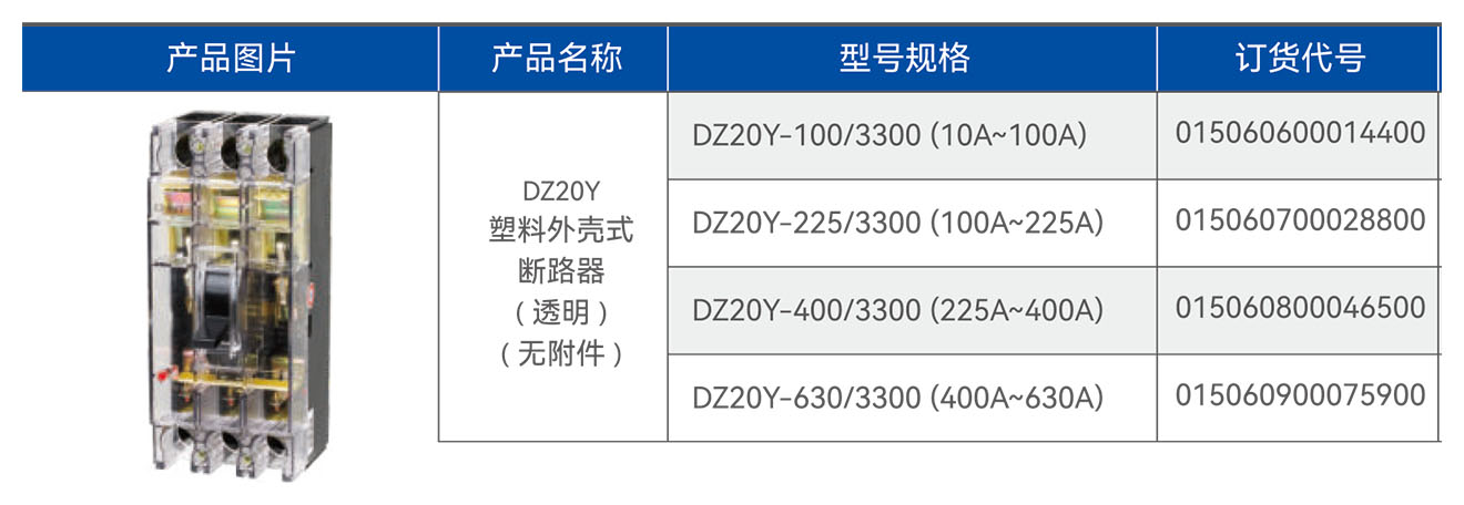 DZ20Y塑料外壳式断路器(透明)(无附件)