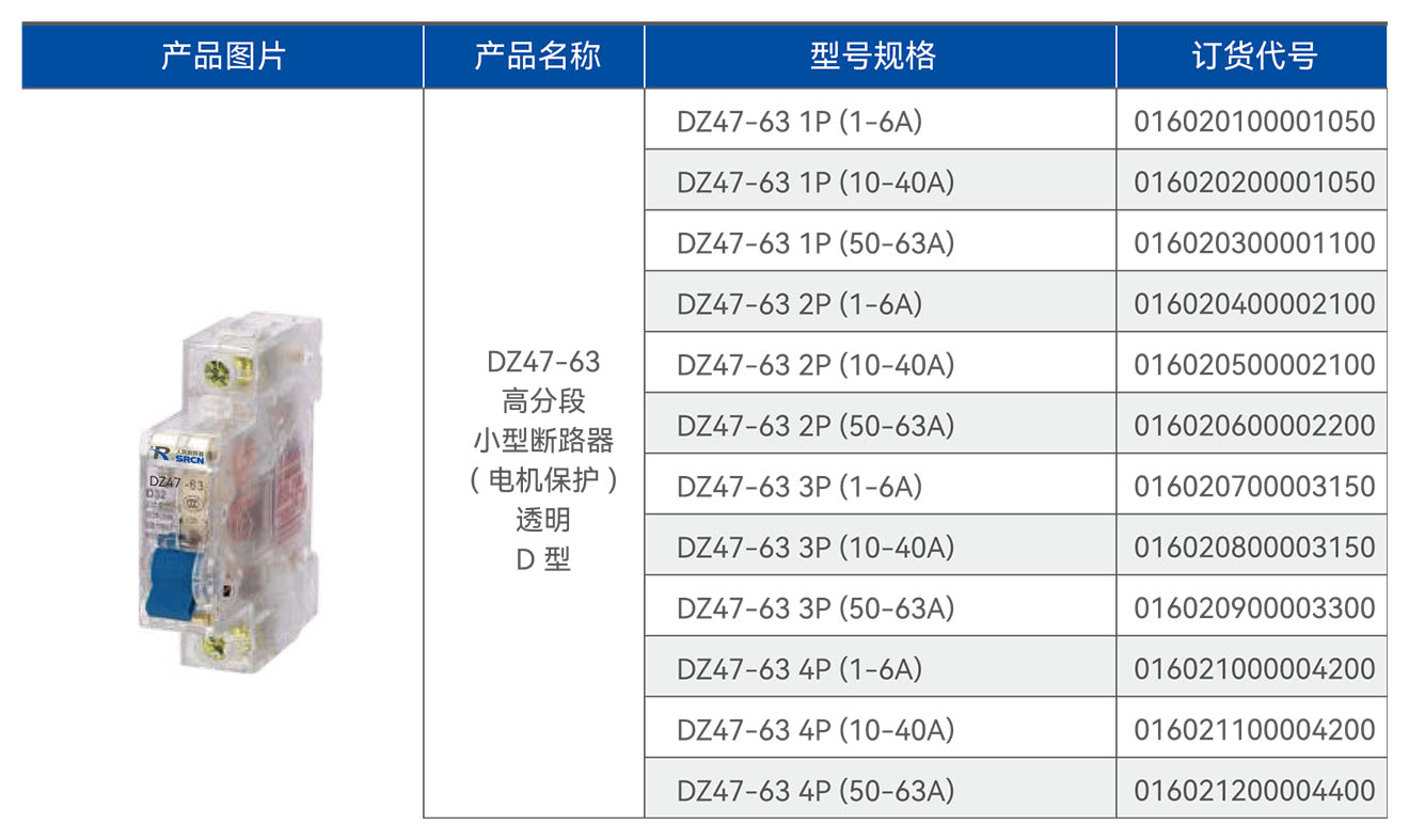 DZ47-63高分段小型断路器(电机保护)透明D型