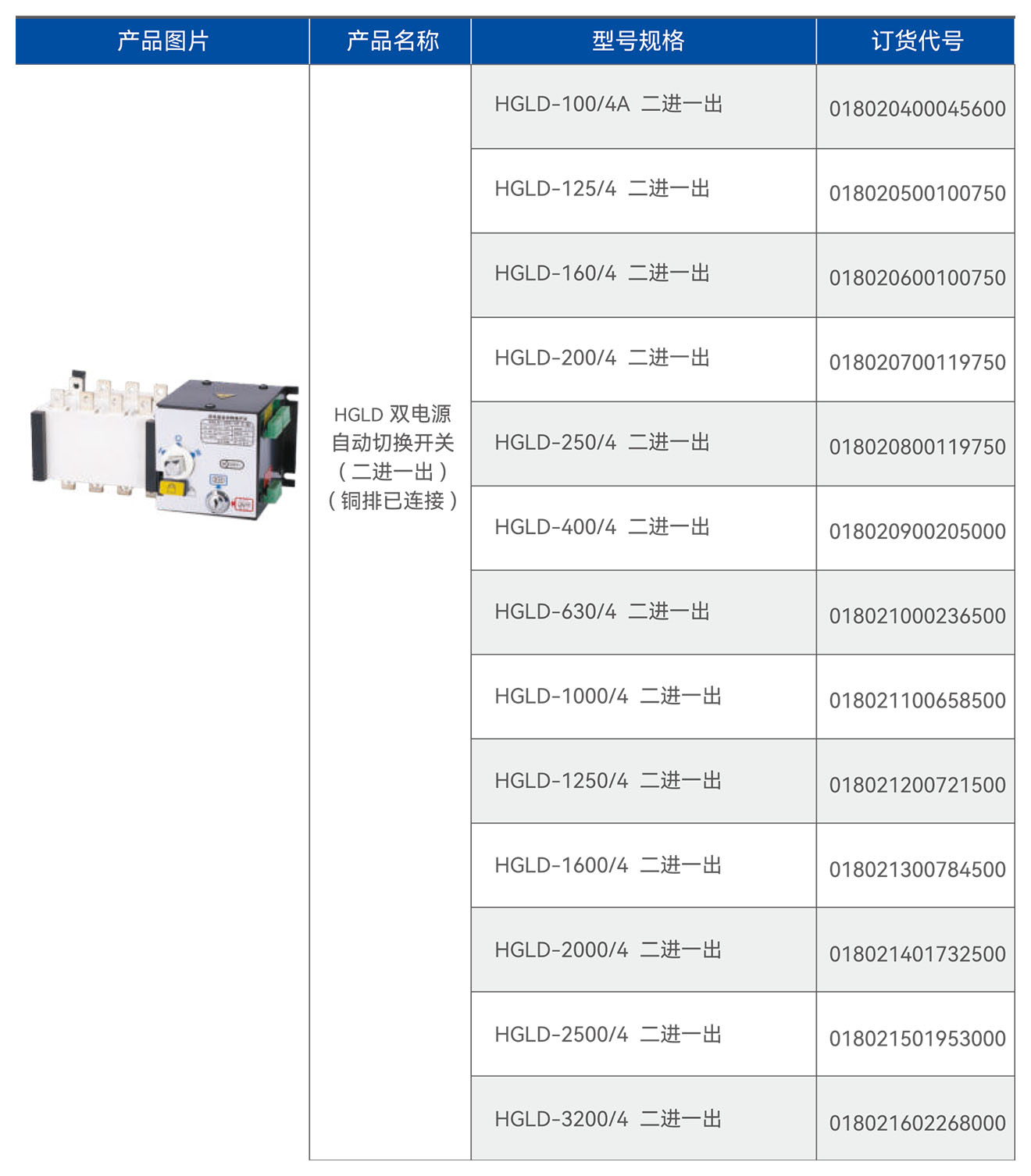 HGD双电夏白动切换开关(二进一出)(铜排已连接)