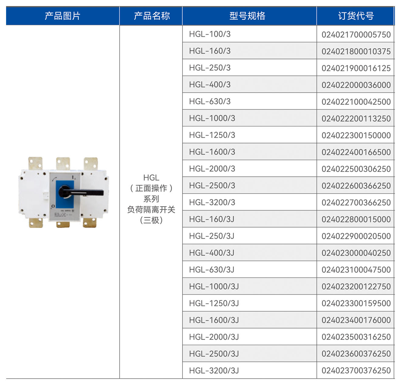 HGL(正面操作)系列负荷隔离开关(三极)