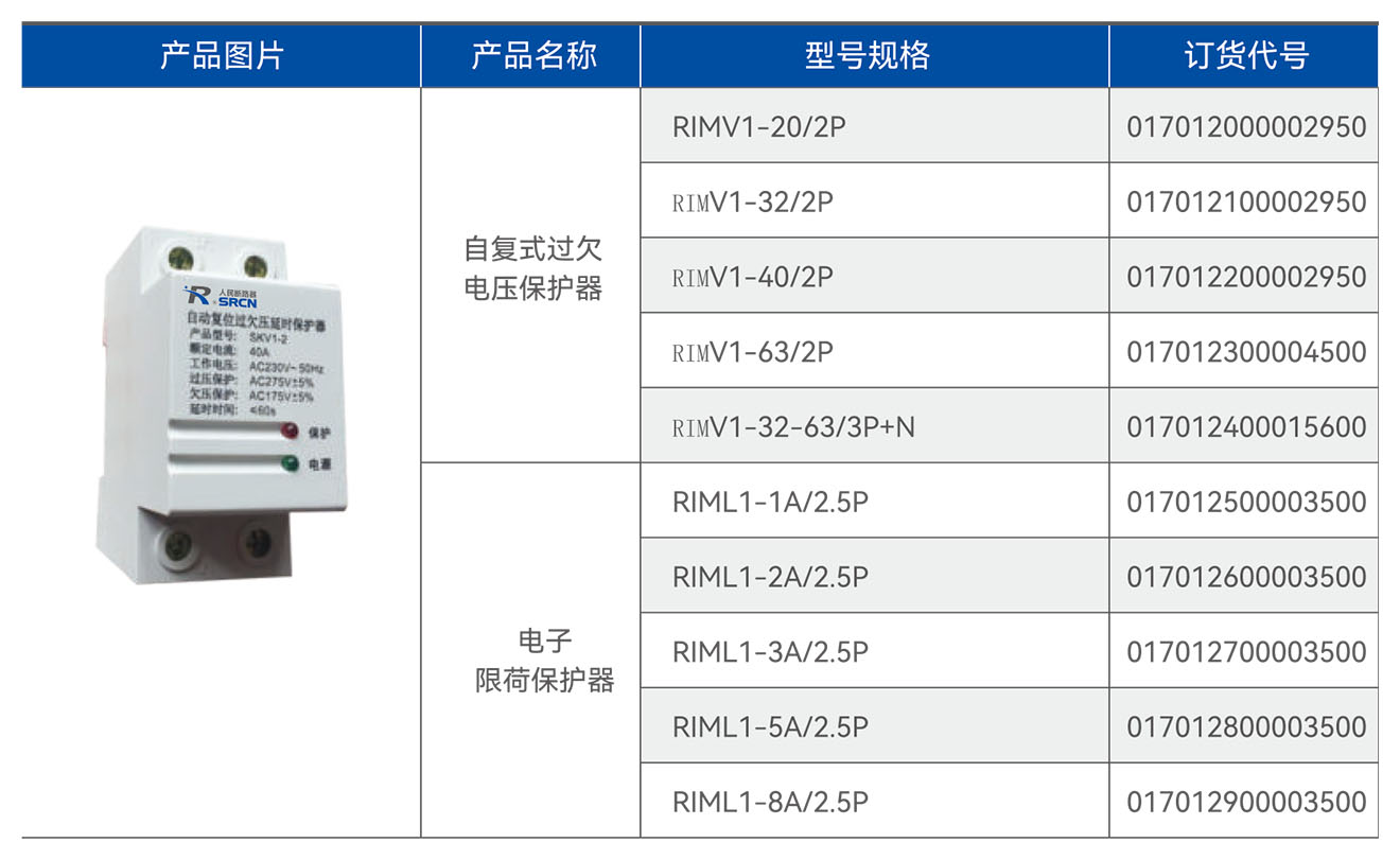 浪涌保护器、自复式过欠电压保护器、电子限荷保护器系列